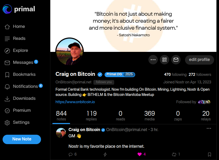 Follow me on Nostr via Primal: