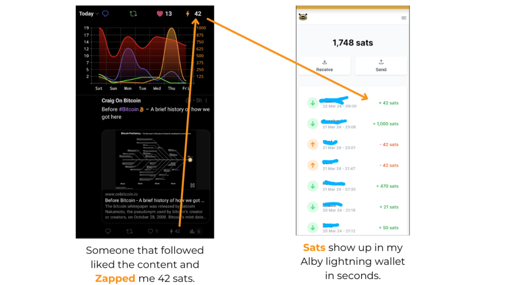 Not only can you like or share posts on Nostr but also send anyone real Satoshis if you like the content they publish.