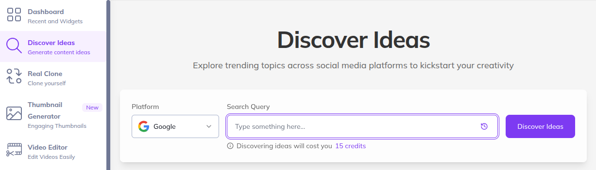 - AI-Powered Idea Discovery: Generates trending topics and keywords tailored to your niche.