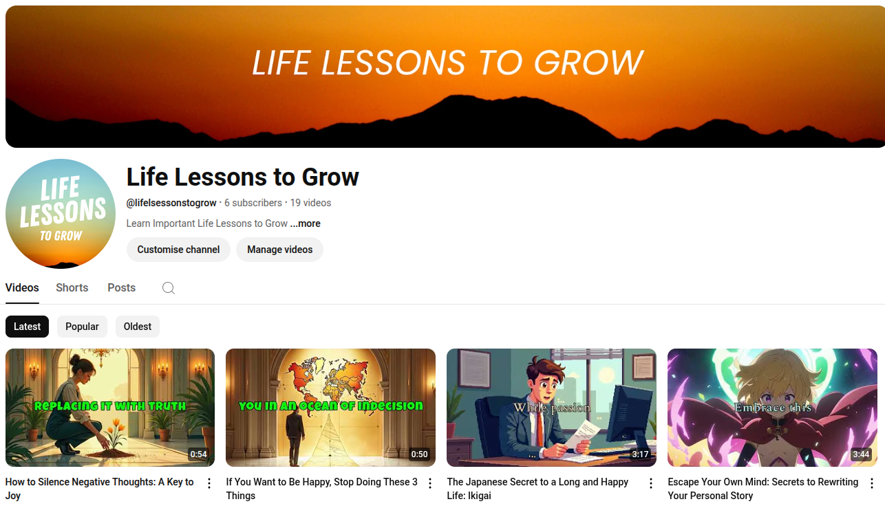 I have been test driving this tool with a new faceless YouTube channel called Life Lessons to Grow. Check it out.