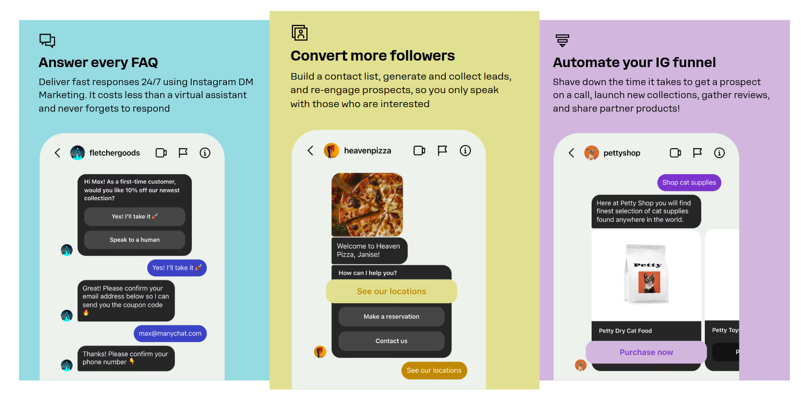 Instead of redirecting users to external landing pages, ManyChat collects emails or phone numbers directly within the chat, resulting in higher opt-in rates.