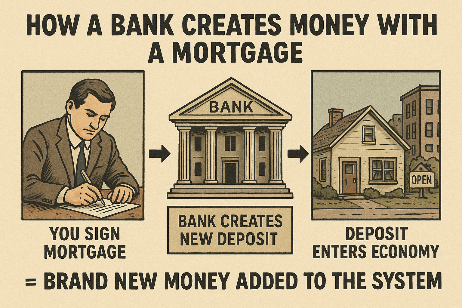 Instead, it creates a brand new digital IOU, credits your account, and calls it a mortgage loan.