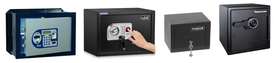 Safes come with different locking mechanisms: key, combination, electronic keypad, or biometric (fingerprint).