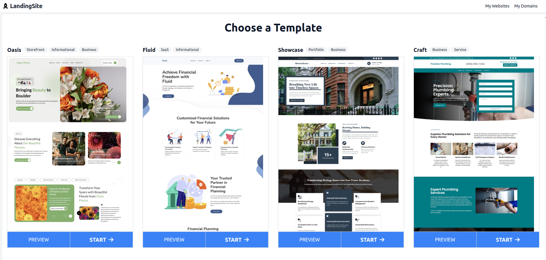 Landingsite.ai will present you with a selection of templates that suit your input. These templates are visually appealing, responsive (meaning they work on desktops and mobile devices), and optimized for search engines.
