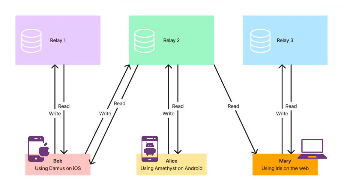 On Nostr, clients like Damus or Primal let you post, follow, and interact with others, all powered by a network of relays.