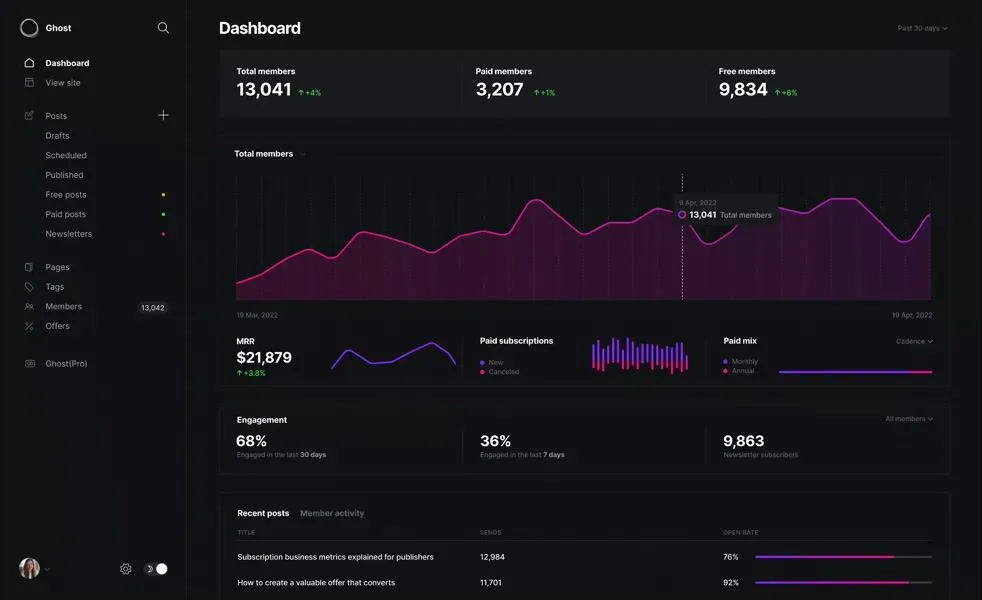 Ghost isn’t trying to be a social network. It isn’t trying to nudge you into engagement loops or algorithmic feeds.